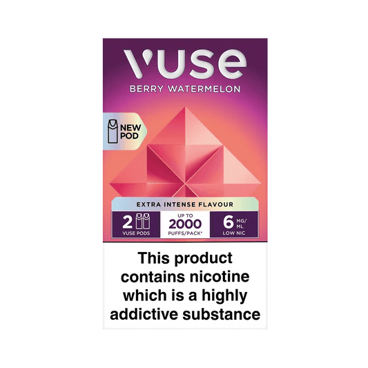 Berry Watermelon Vuse Pods have a mix of red berries and watermelon flavours with a cooling finish.