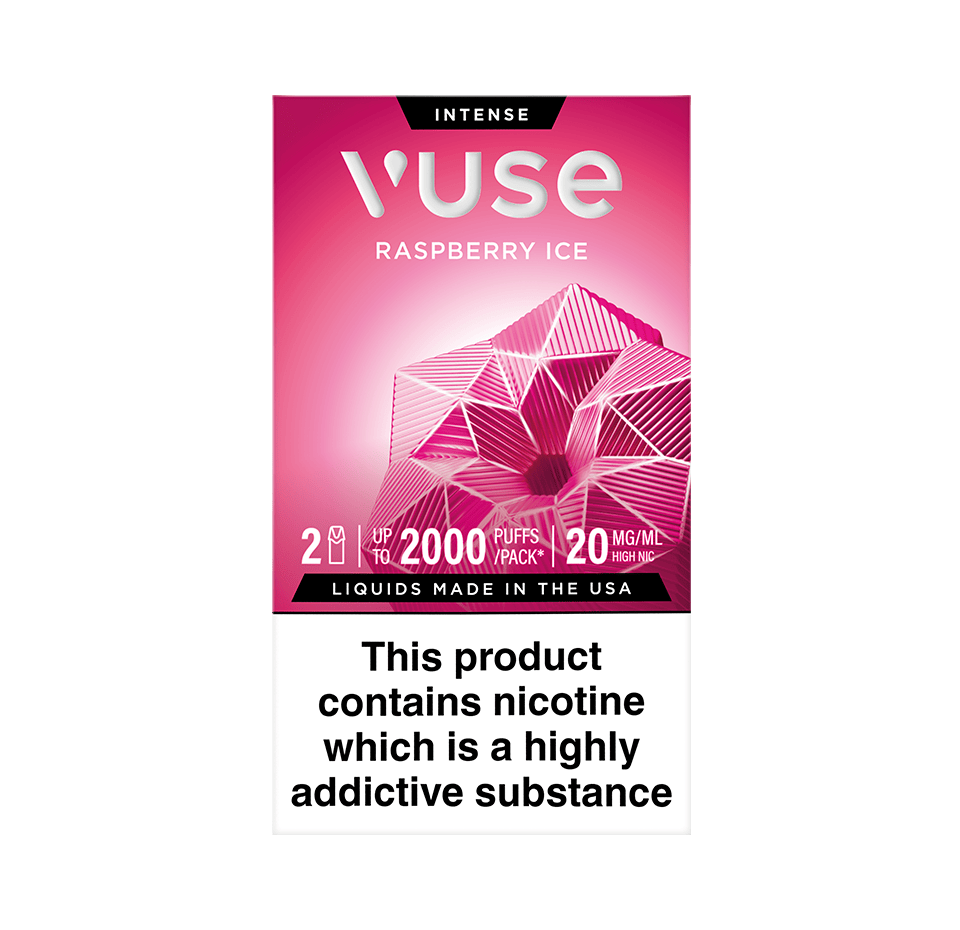 The Raspberry Ice Vuse Pods with nic salts create a raspberry flavour with a cooling finish.